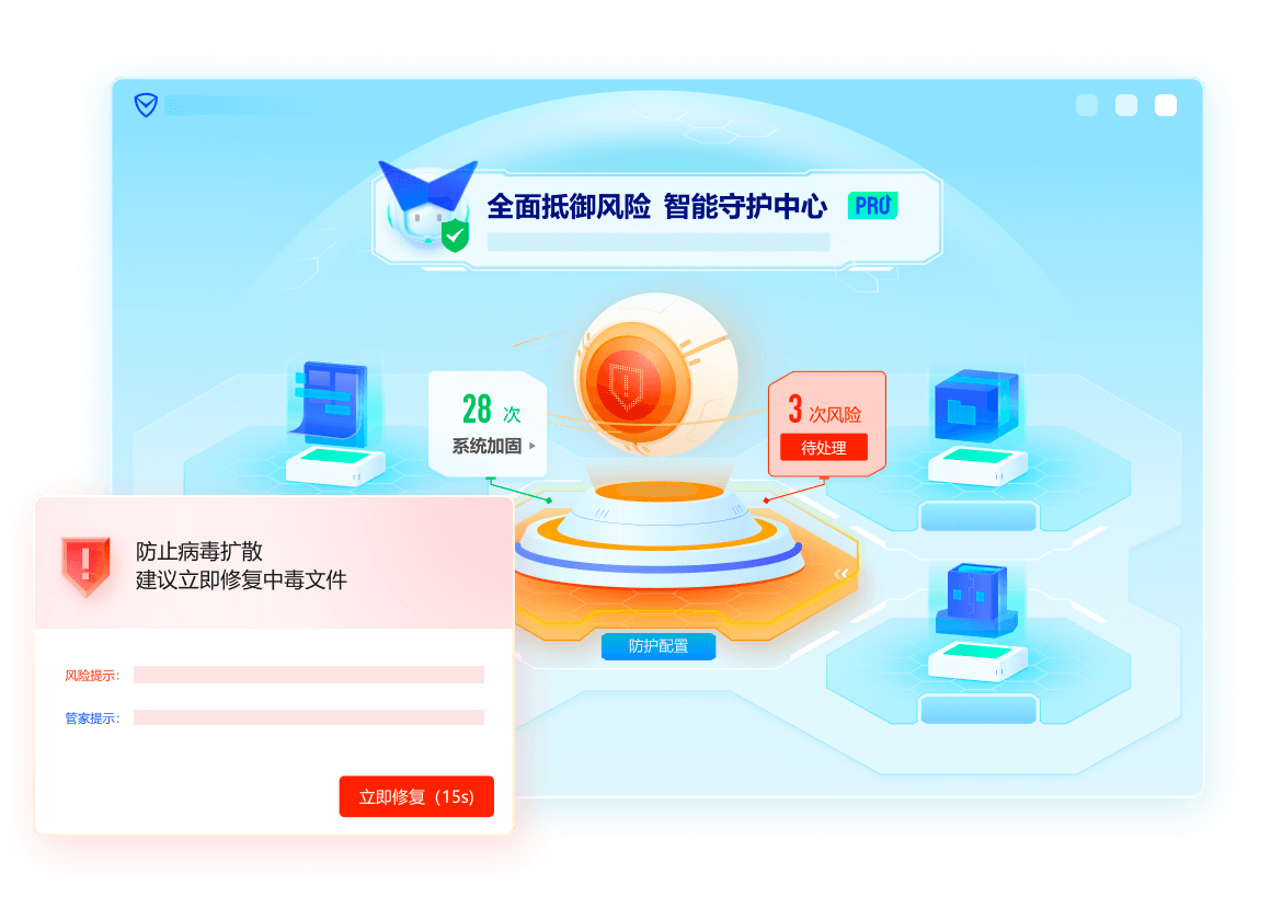强力查杀病毒木马,实时预警电脑风险,CPU内存占用更少,让电脑安全又流畅。