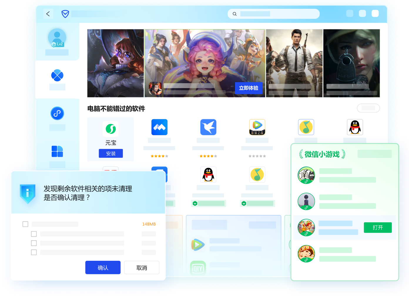 正版绿色软件无捆绑,小程序 / 小游戏即点即用。强力卸载无残留,让系统轻装上阵。