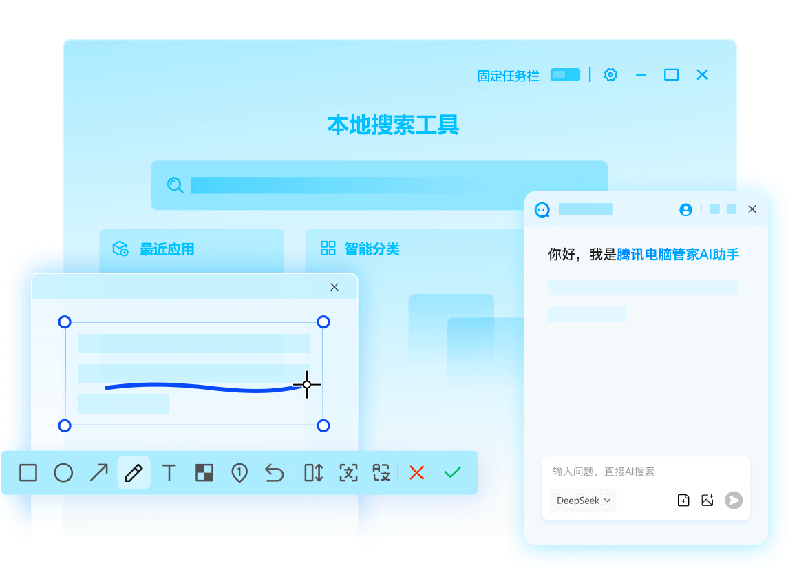 一键截图 / 钉图 / 文字提取,秒速搜索本地文件,更支持AI深度处理(元宝-DeepSeek&Hunyuan),让高效办公触手可及。